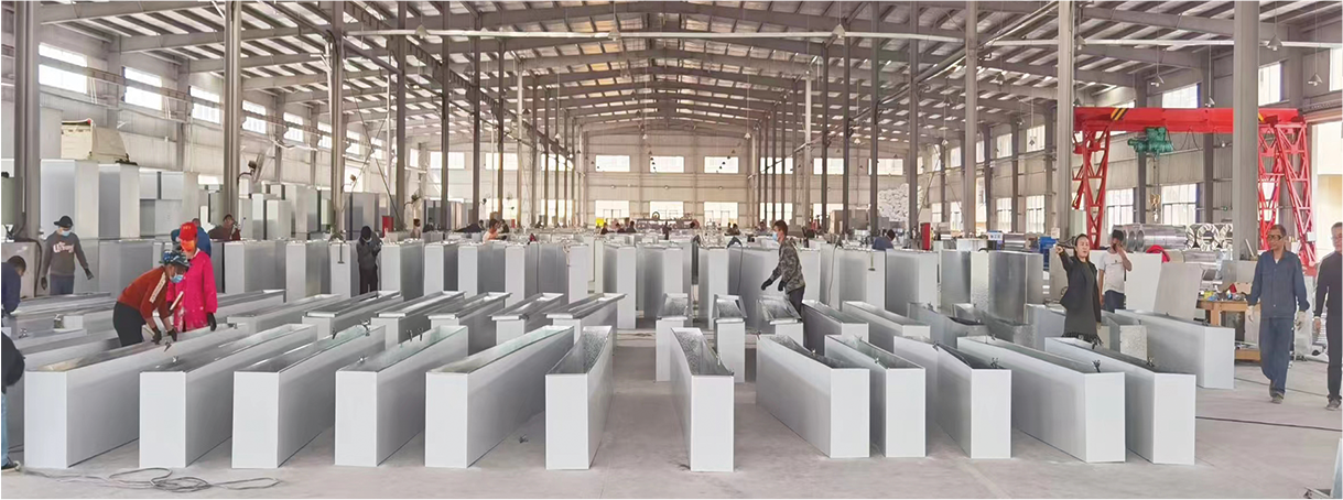 ●风管结构:外层0.2mm彩钢贴面,作用:管道美观、防止掉粉和变色。中间层为新型无机微孔板,含漂珠、石墨硅等耐火隔热材料,具有优越的耐火隔热性能。内层为镀锌钢板,钢板厚度可根据规范符合《通风与空调工程施工质量验收规范》GBT50243-2016表4.2.3-1中高压系统的要求或按设计要求。